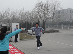 下午4點,隨著副總經(jīng)理王興春手中的發(fā)令槍響,員工們爭先恐后的向前沖去。沿著開發(fā)區(qū)北路望去,身著工作服的員工如一條長龍,蜿蜒向前。迎著凜冽的寒風,大家你追我趕,熱情高漲。女員工們也毫不示弱,巾幗不讓須眉。最終,3000米的路程,質(zhì)量部的張洪云以19′10″,奪得女子組第一名,第二名是生產(chǎn)部的胡俊,第三名是公司食堂的萬寶瑋;男子組第一名是營業(yè)部的楊大帥,成績是13′50″,他也是我公司蟬聯(lián)三屆的長跑冠軍,第二名是生產(chǎn)部的翟海波,第三名是副總經(jīng)理姜作棟。